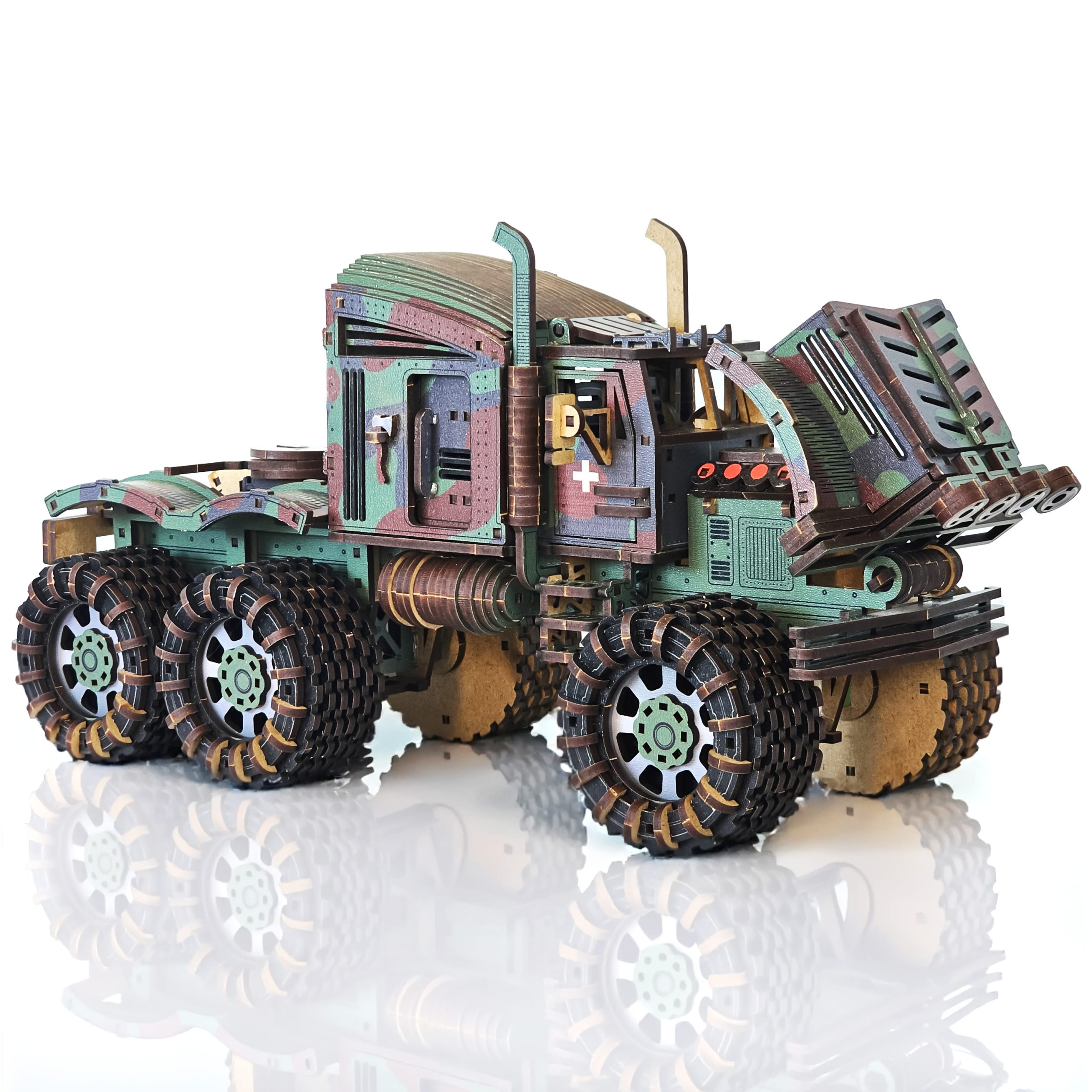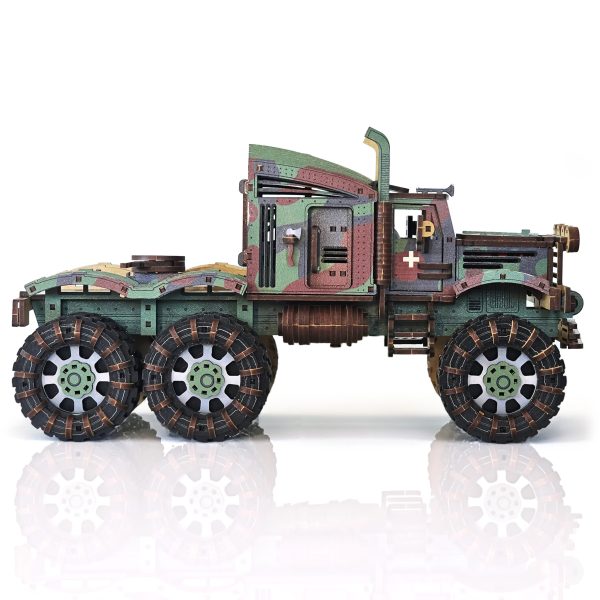 Военный тягач – это не просто конструктор. Это символ мощности, выносливости и несокрушимости. В реальности такой транспорт способен вытянуть любую технику из самых сложных ситуаций, а в нашем исполнении он превращается в уникальный деревянный пазл, который оживает прямо у вас на столе.