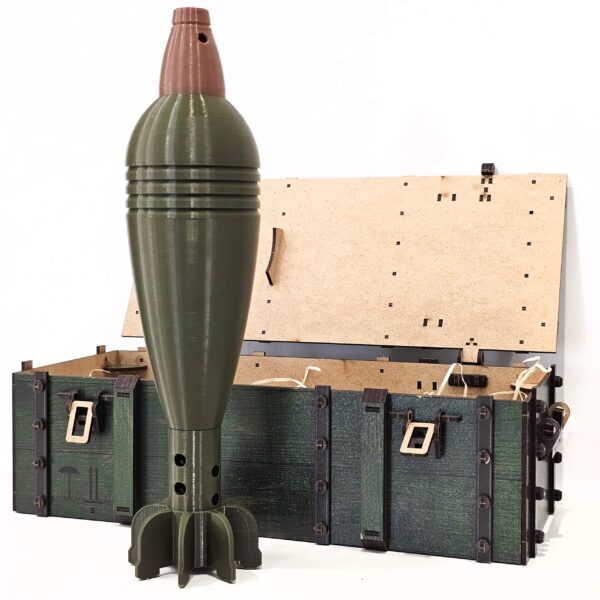 - Откройте для себя уникальное сочетание мастерства и увлекательного времяпрепровождения с нашим деревянным 3D конструктором “Ящик с пластиковым макетом мины 82 мм” от THEGRAVIX.