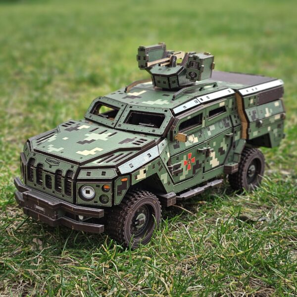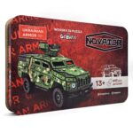 - Откройте для себя захватывающий мир специализированного бронерованного автомобиля “NOVATOR” с деревянным конструктором от THEGRAVIX.