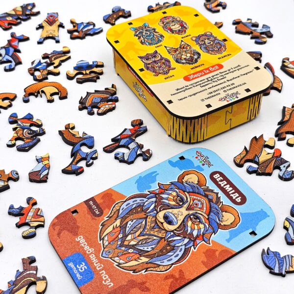 Деревянный Пазл для детей “Медведь Фигурный” 35 шт