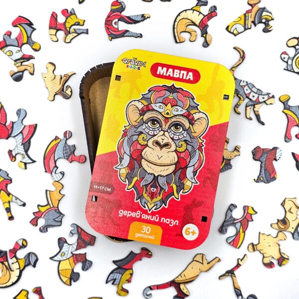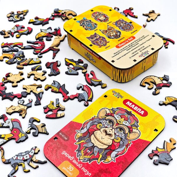 Деревянный Пазл для детей “Обезьяна Фигурная” 30 шт