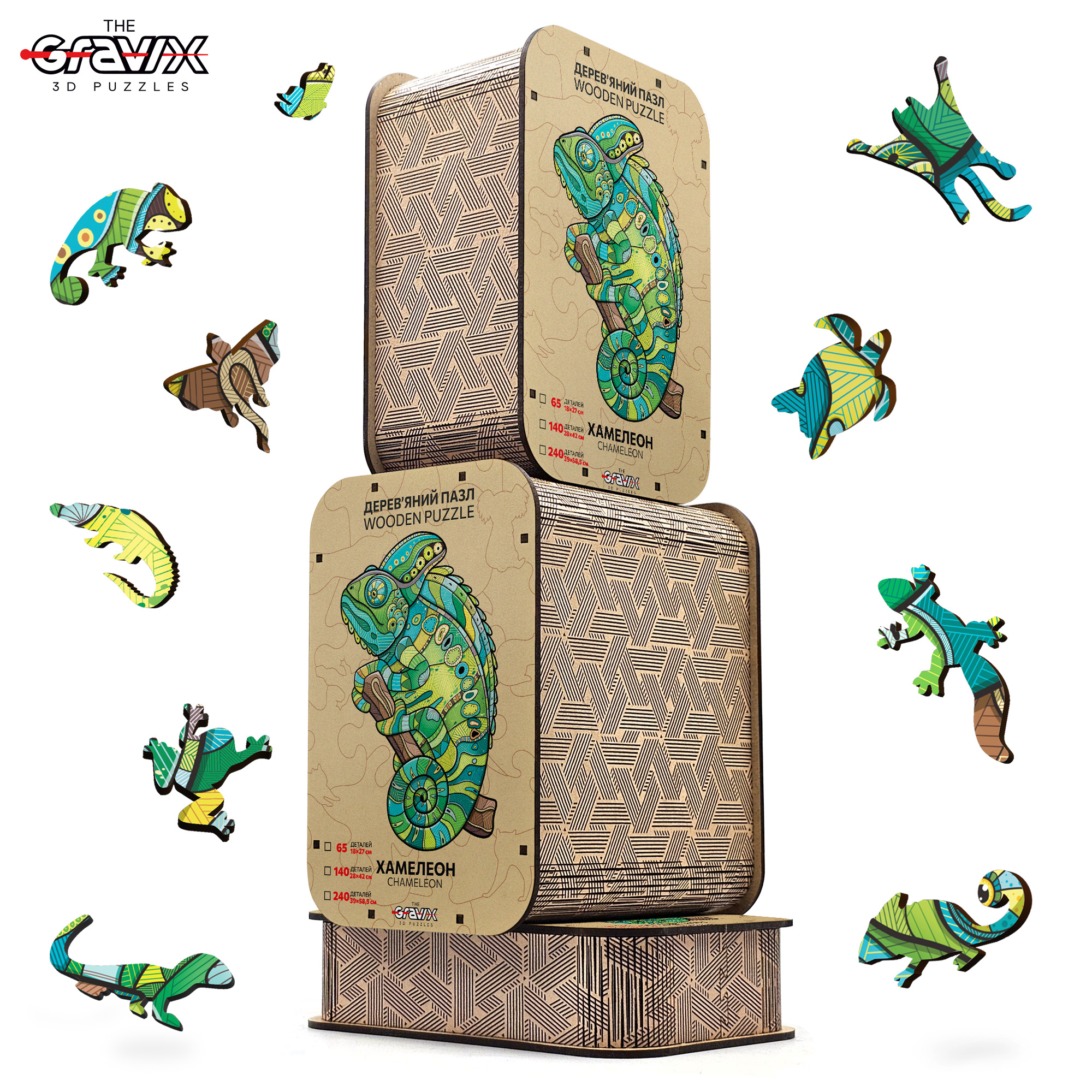 Деревянный Пазл для детей "Хамелеон Фигурный" 30 шт