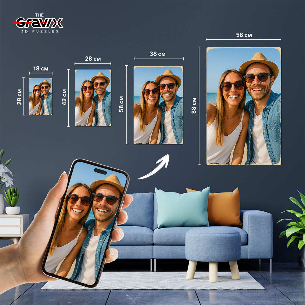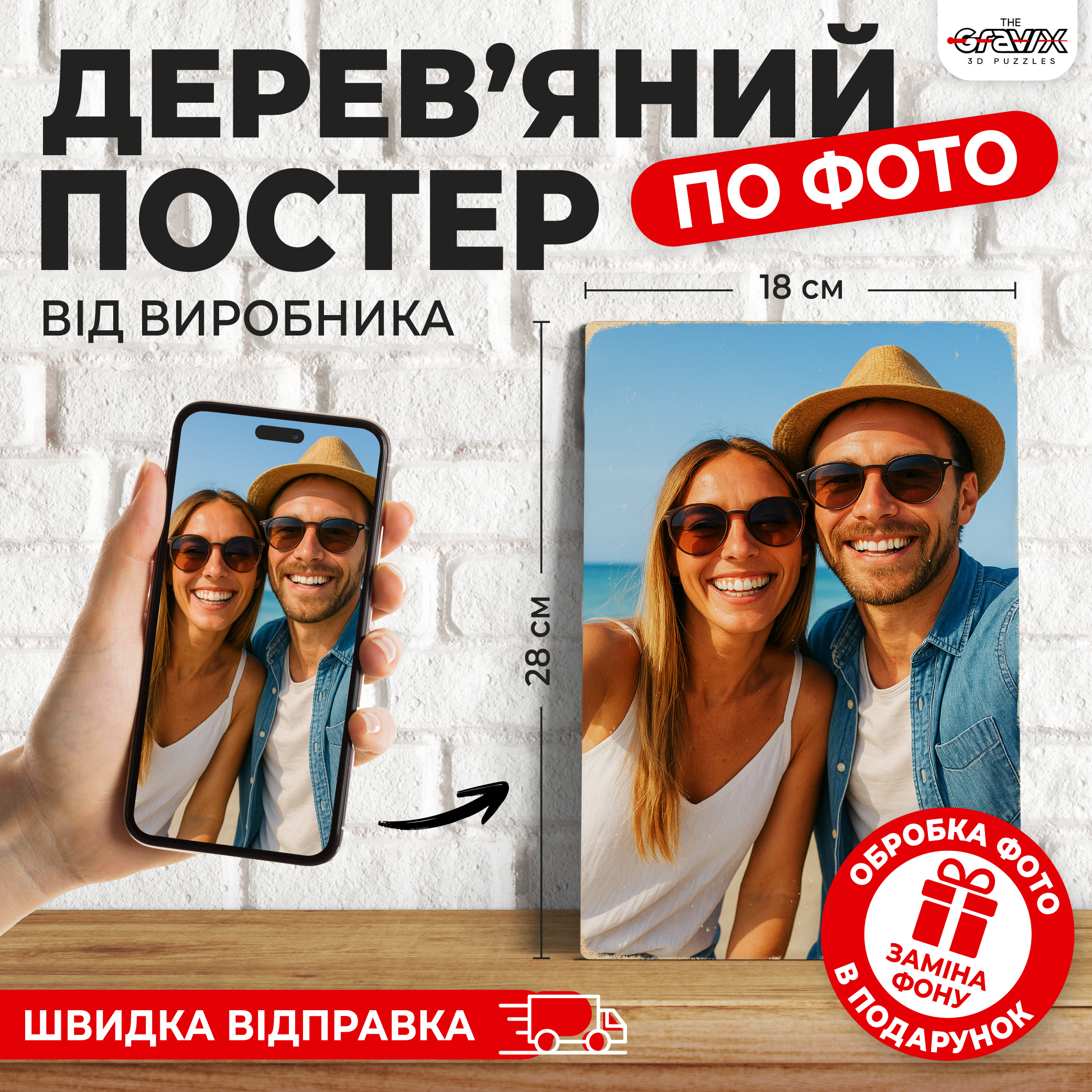 Мы создаём уникальные деревянные постеры по вашему фото — это не просто декор, а настоящая история, которую хочется повесить на стену. Идеальный подарок для любимого человека, семьи или себя — на день рождения, годовщину или просто так.